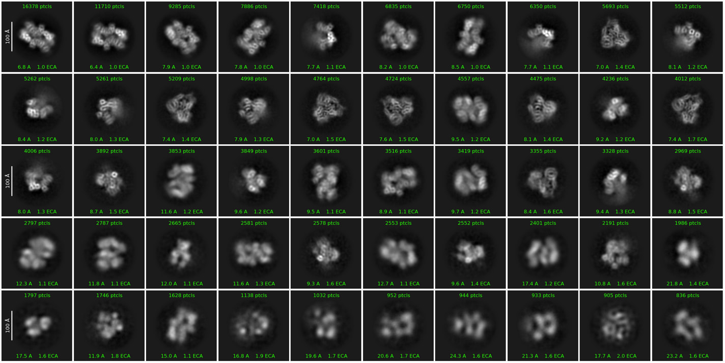 2D class (50 classes, 80 EM iter, 400 batchsize, max over poses off)