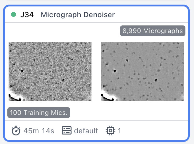 The thumbnail for denoising jobs is annotated with a note giving the number of training mics - this is there even when a pre-trained model is supplied in the inputs (and the number of training mics is therefore wrong)