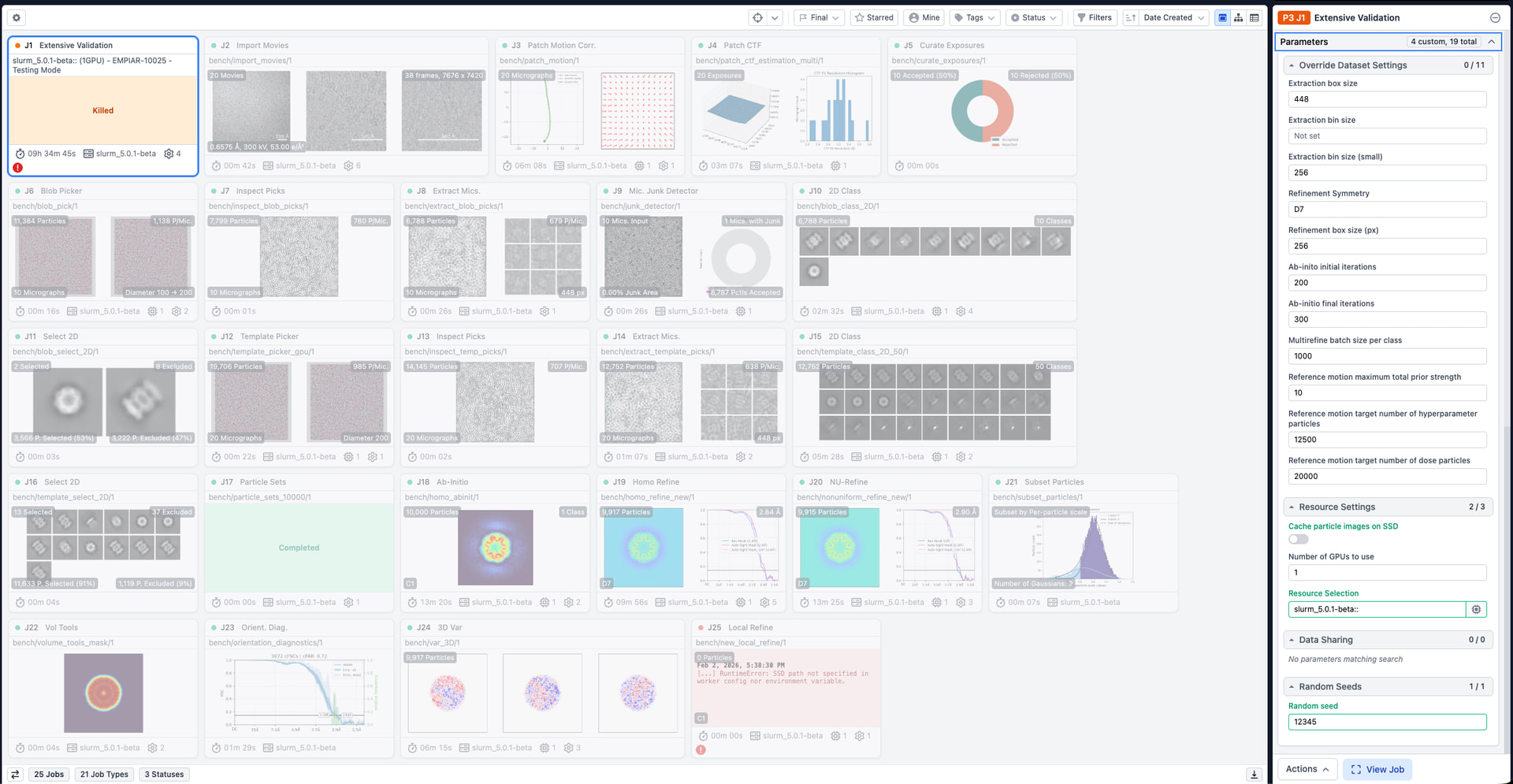 The problem is specific to local refinement jobs that are launched within Extensive Validation. Local refinement jobs outside Extensive Validation should run according the respective job’s Cache particle images on SSD setting.