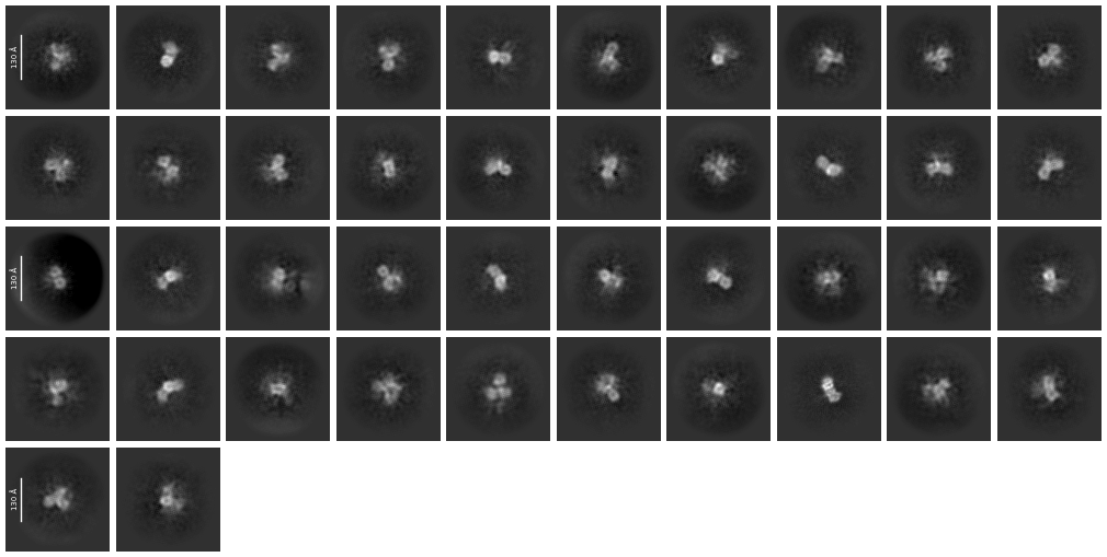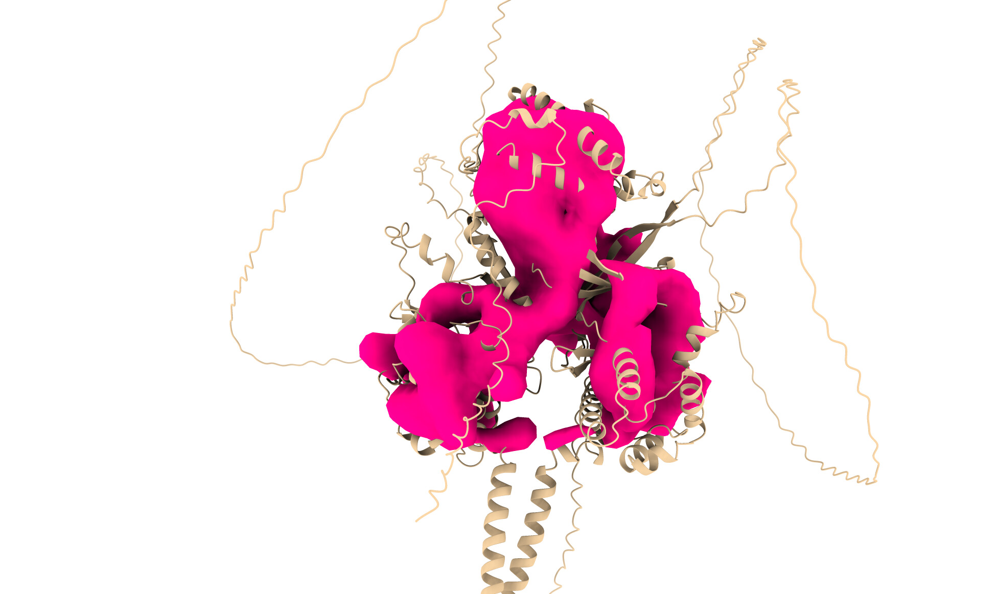 We keep getting “hollow” structures, often with very few structural details. From the 2D Classes, we frequently have three three-lobe structures, which are very much in line with the predicted structure. Ab initio structures overlayed with the alphafold structure produce what you would expect - a three-lobed but “hollow” structure - each of the lobes has massive holes going through them.The 2D classes also appear to show this also, there are block dots in the middle of each lobe.