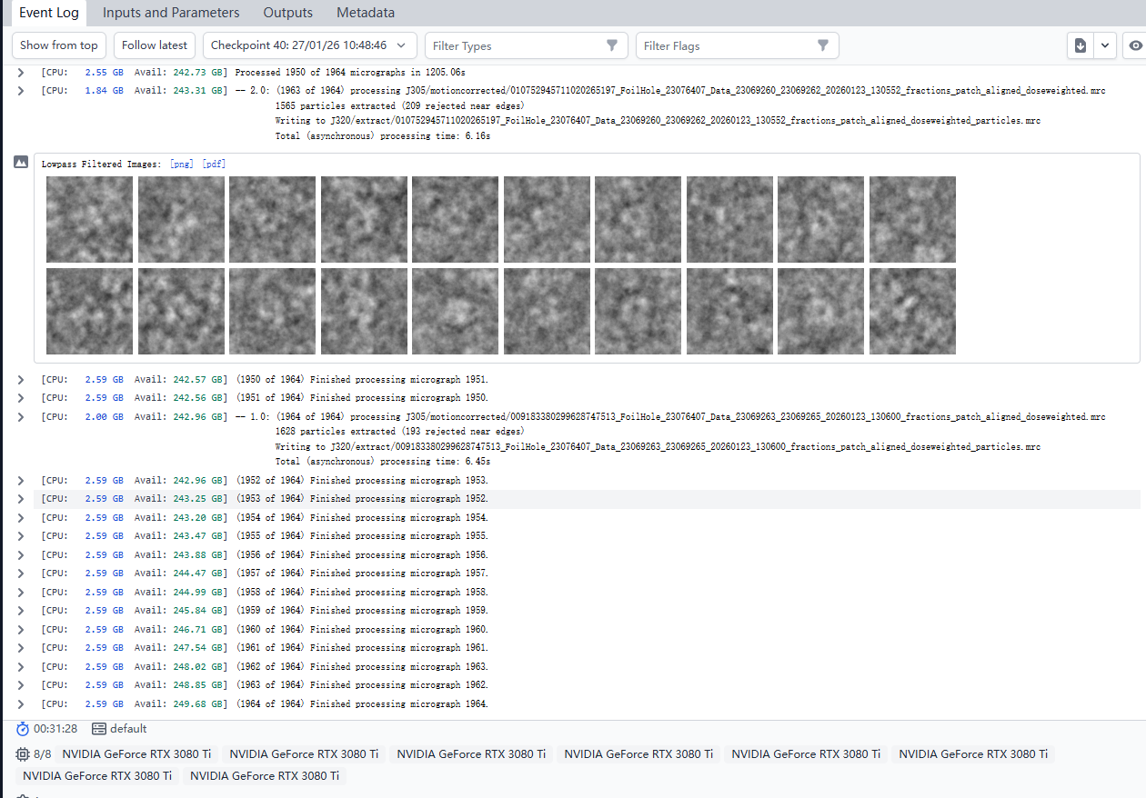 cryosparcm joblog $csprojectid $csjobid | tail -n 40