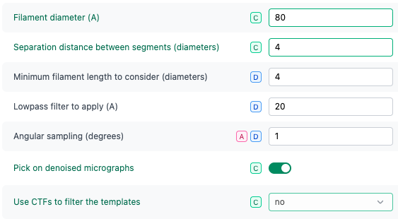 For really precise filament particle picking we use CrYOLO and import the coordinate starfile. I attached DNA-bound Par filaments below, they are really sparse. Training from 20 manually picked micrographs resulted in great picking accuracy.