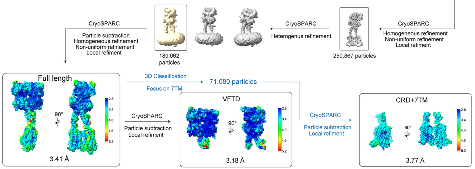 You are right, careful parameter choice will be needed. However, after many trials, I don’t know on which point the map quality will converge, and if we should collect more data or should try more choice on parameters for local refinement and mask, such as dilation radius, soft padding width and search range. The 2025 NATURE paper on sweet taste receptor showed a very clean map on 7TM. Can you analyze their parameter choice or give some comments on their mage data collection that likely led to such a clean map?
