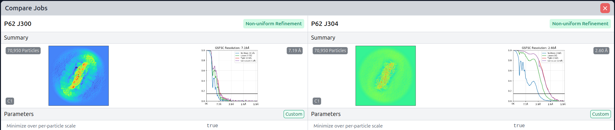 I am currently performing non-uniform refinements (with minimize over per-particle scale) on a dataset after reference-based motion corrections. And at some instances, the job completes after the 5th iteration, yielding a ~7 A map.