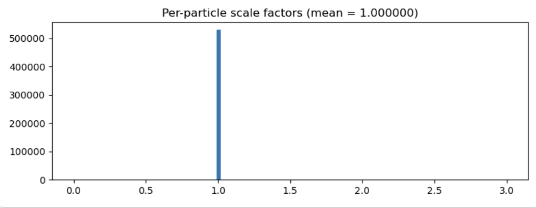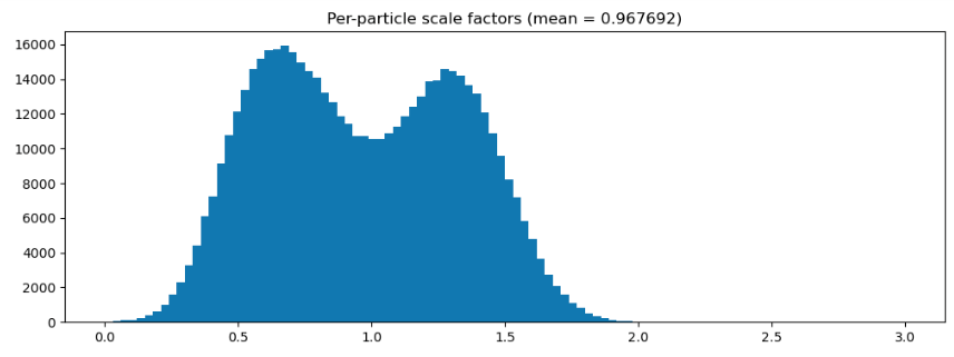 Are the per-particle scales calculated during 3D classification not exported with the particle outputs? I’m asking because the distributions shown in the two screenshots differ substantially.