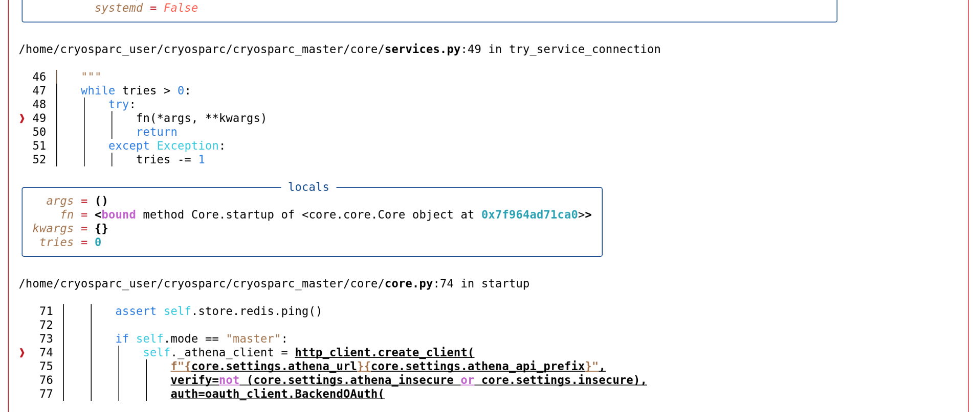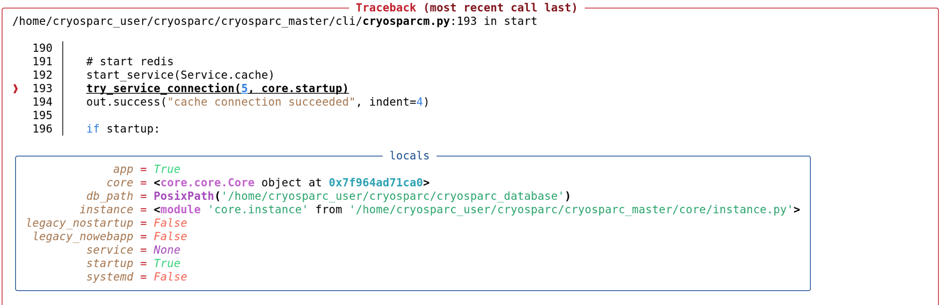 │ │ config = PosixPath('/usr/local/cryosparc/cryosparc_master/config/supervisord.conf') │ │