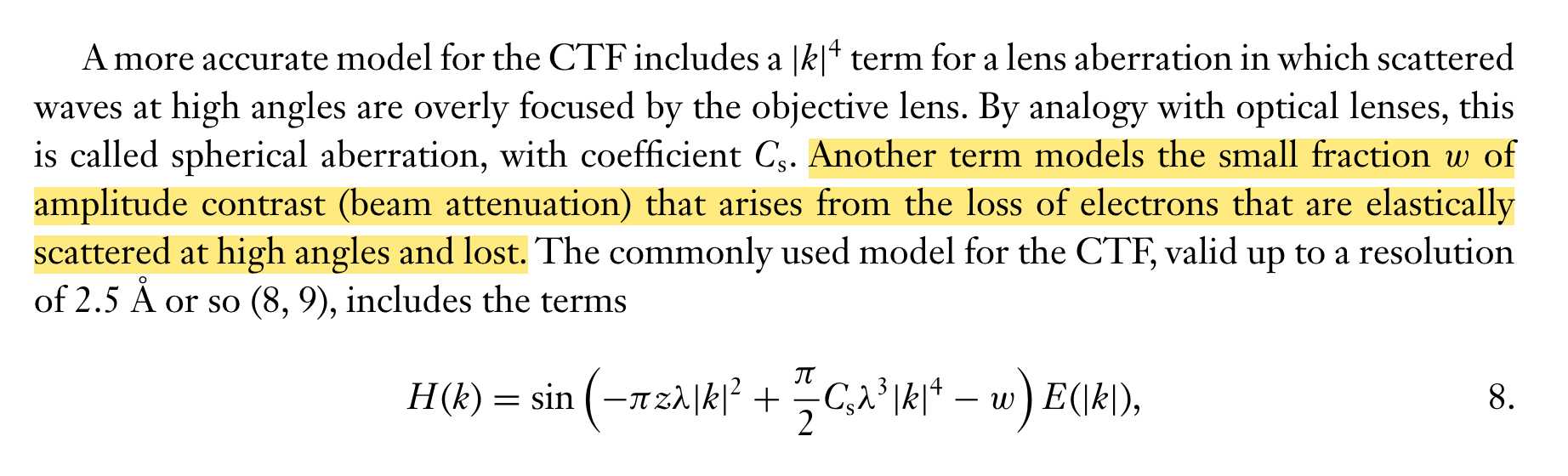 (The phase shift is the w term in Singer and Sigworth, 2020. Eqn 8 shows a simplified CTF model omitting astigmatism, 3rd order terms, and tetrafoil)
