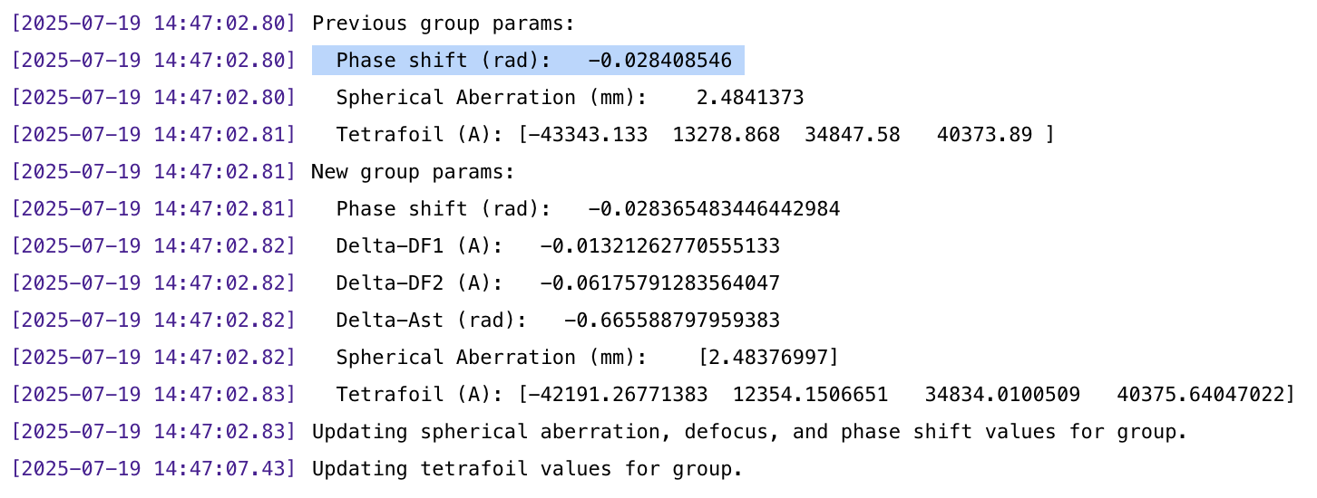 I’ve noticed that when spherical aberration, tetrafoil and anisomag are refined in global CTF (at least when run on-the-fly in homogenous refinement), a small non-zero phase shift is refined, for data where the phase shift ought to be zero (collected without a phase shift, and where no phase shift was refined during Patch CTF).