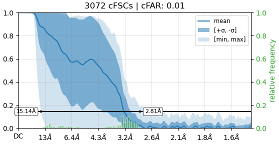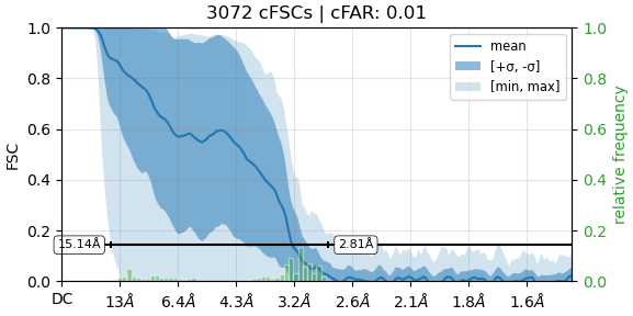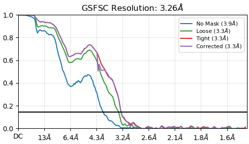 Using these particles, we performed an initial non-uniform (NU) refinement, which produced an FSC curve showing a bump around 4–5 Å.