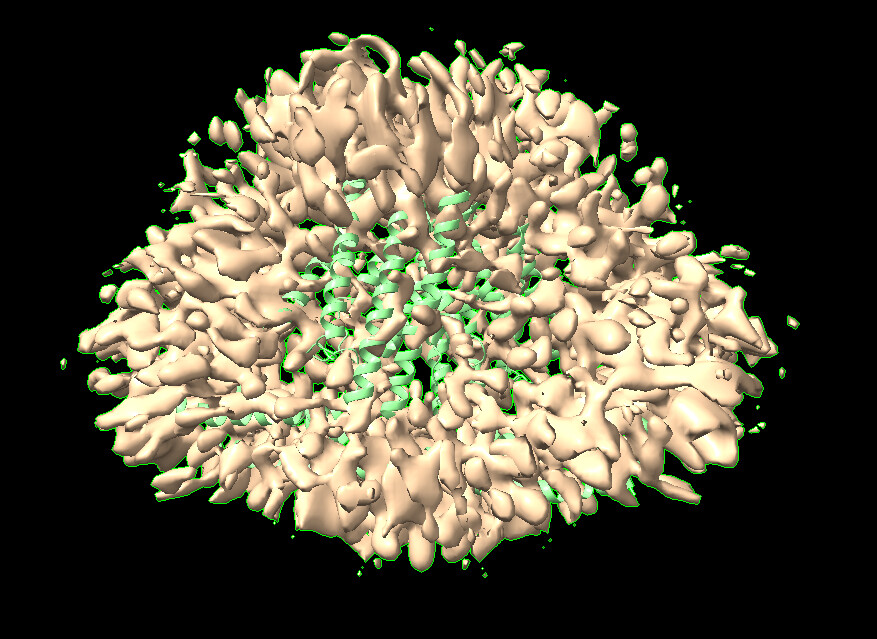 I collected ~2000 micrographs on a Talos Arctica (200 kV) at 92k magnification, with a total electron dose of 40 e⁻/Ų. I performed 2D classification and homogeneous refinement with C2 symmetry applied.