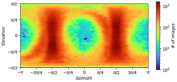 The azimuth-elevation plot is relative to the arbitrary Z-axis (0,0). If the reference was generated ab initio in cryoSPARC, the longest dimensions of your volume is oriented along the Z-axis.