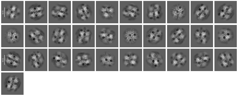 Recently I met a strange issue. As shown in the attached figure, during the processing of 2D-classification, we clearly observed some circle-shaped densities with a diameter of 3-4 nm, which somehow shaded our target protein, resulting in failure in aligning our target particles. Our sample is capable to attach with membrance fraction, so we first treated it with the detergent DDM and then removed the DDM by exchanging buffer for cryo-EM sample freezing.